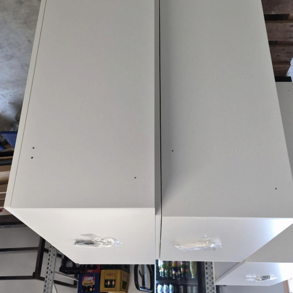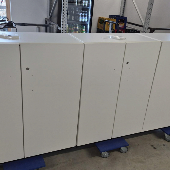 Die Schränke waren mit Schrauben verbunden, daher seitlich Löcher vorhanden (als Set in Reihenstellung nicht sichtbar)